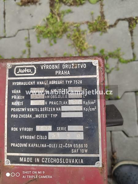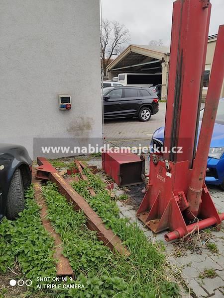 Zvedák stranový MOTEX 7515, r. v. 1976. Nefunkční, zaseknutý v horní poloze, nedrží výšku. Od roku 2018 v rozebraném stavu bez olejové náplně. Vhodné na ND. Vzhledem k váze předmětu vyhlašovatel aukce nedisponuje zvedacím zařízením pro jeho naložení, případný výherce si naložení zajistí na vlastní náklady.