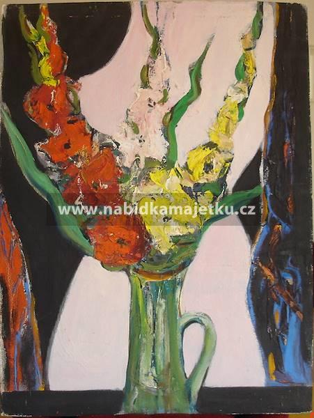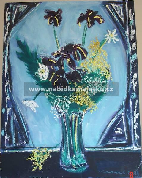 1. obraz Váza s kyticí, technika: olej, podklad: sololit, rozměr: 50 x 67 cm,