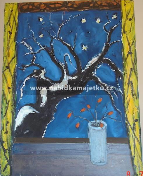 2. obraz Strom za oknem, technika: olej, podklad: sololit, rozměr: 65 x 85 cm,