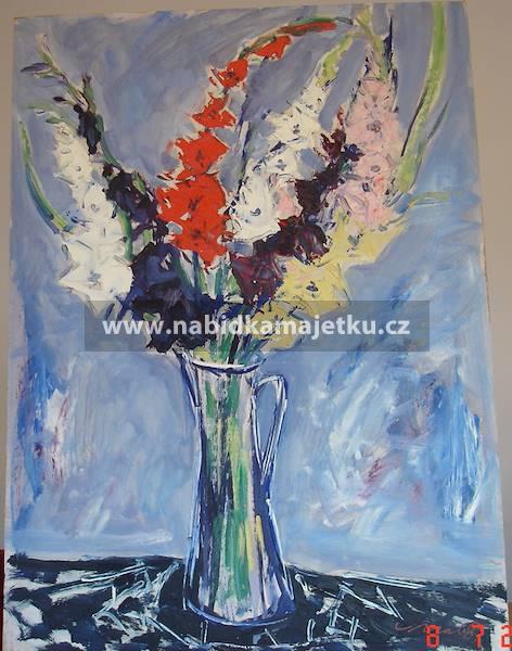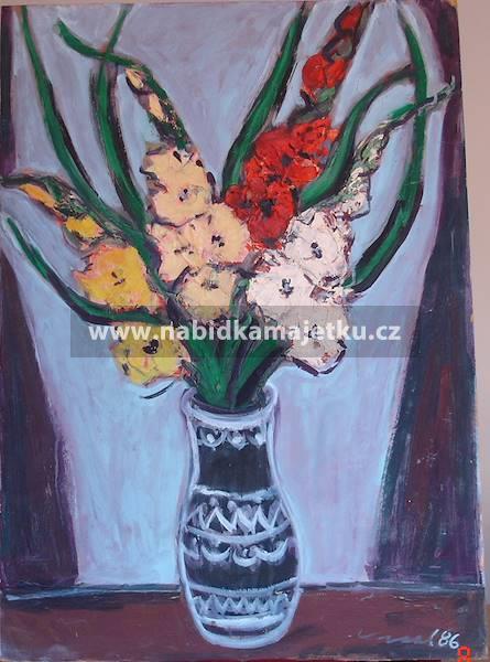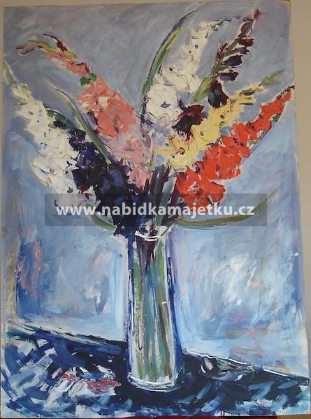 7. obraz Váza s kyticí, technika: olej, podklad: sololit, rozměr: 56 x 78 cm,