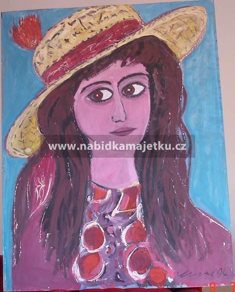 5. obraz Portrét dívky, technika: olej, podklad: sololit, rozměr: 66 x 85 cm,
