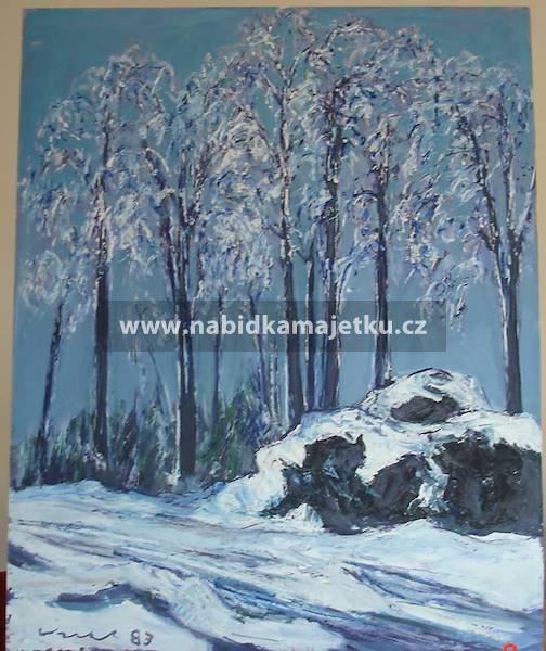 4. obraz Zimní krajina, technika: olej, podklad: sololit, rozměr: 65 x 80 cm,
