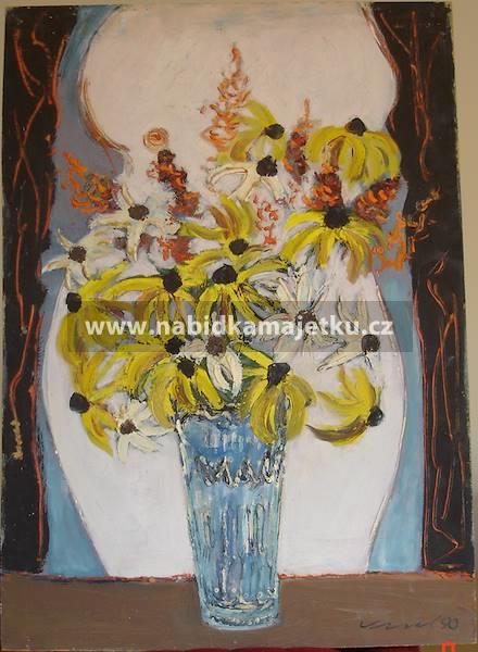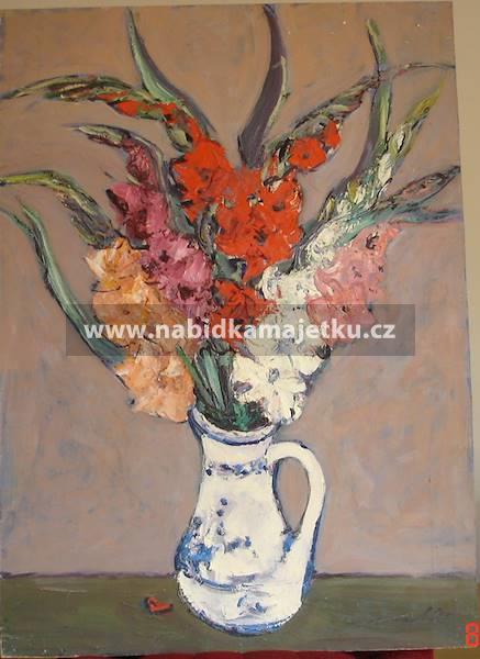 4. obraz Džbán s kyticí, technika: olej, podklad: sololit, rozměr: 57 x 80 cm,