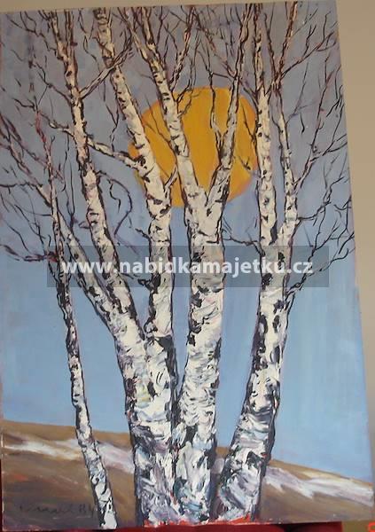 8. obraz Břízy, technika: olej, podklad: sololit, rozměr: 57 x 86 cm,