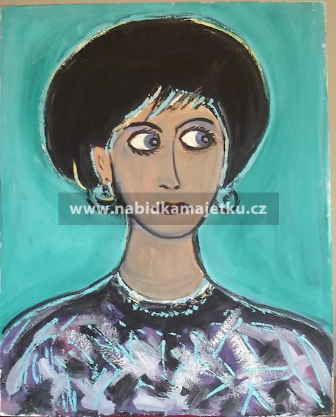 2. obraz Portrét dívky, technika: olej, podklad: sololit, rozměr: 59 x 74 cm,
