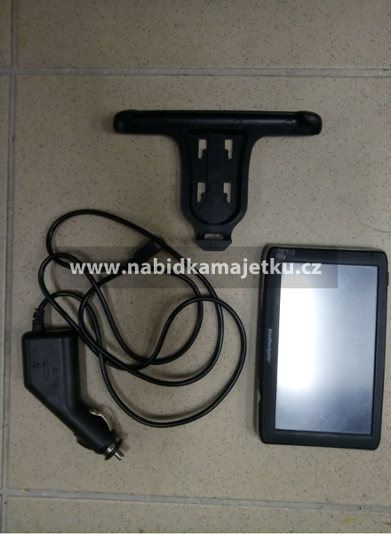 Navigace zn. Road Navigator RN 200, č. 201955115744, včetně části držáku a nabíjecího kabelu. Jedná se o již používanou věc, nezaručena funkčnost.
