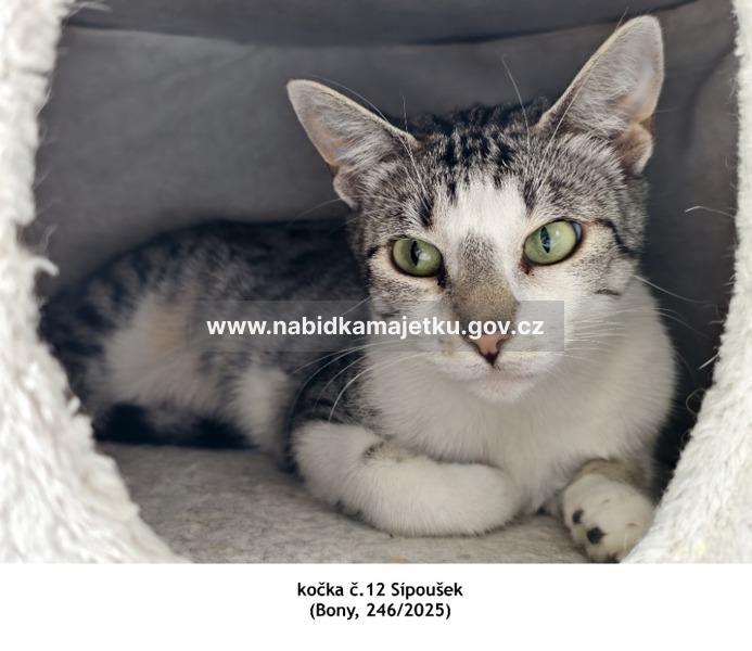 VI) kočka č.12 (246/2025) Bony-Sípoušek - kočka velmi submisivní ve vztahu k jiným kočkám. V době říje kontaktní a vokální, mimo říji je většinou v úkrytu. Pokud je v něm vyrušena, dokáže seknout. V jídle velmi vybíravá, v podstatě dobře žere pouze konzervy Gurmet, kousky.