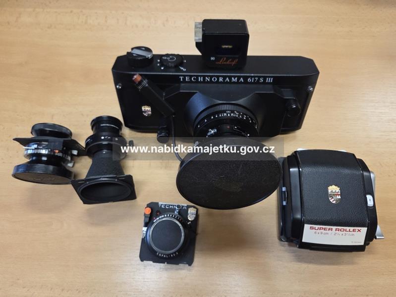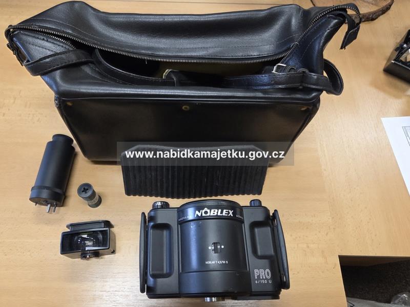 Panoramatická kamera NOBLEX 6/150U s příslušenstvím, byla pořízena v r. 1997 za celkovou pořizovací cenu 115 579 Kč. Jde o středoformátový přístroj vyráběný v Německu, který využívá technologii výkyvného objektivu (swing-lens) k vytvoření ultraširokých snímků na svitkový film typu 120.Majetek je odprodáván za minimální kupní cenu: 30 000 Kč.