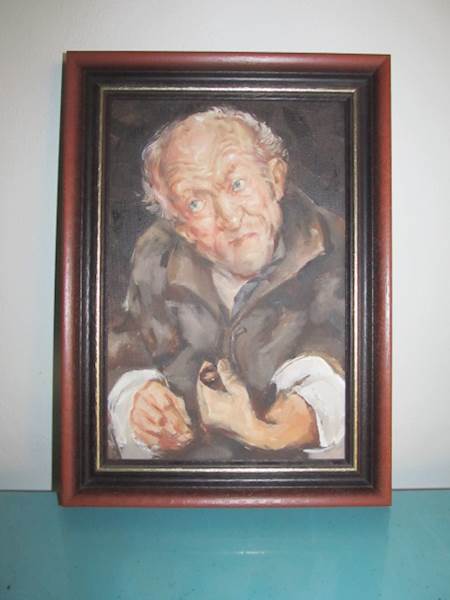 Jedná se o obraz (olejomalbu) - portrét autora akademického malíře Akai Akaeva s názvem "Jrki Blahi a Přehradí" z roku 2009 s rozměrem 20 x 30 cm v zachovalém stavu.