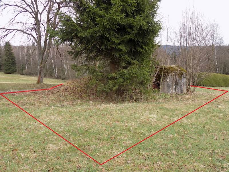 Hlavní součástí pozemku stavební parcely č. 424 je stavba bez čp/če, jiná stavba – pevnostní objekt stálého lehkého opevnění „Lehký objekt D1b Nový Hrádek/247/A-120“, tzv. řopík, vystavěný v roce 1937. Objekt je železobetonové konstrukce, s jednou místností, jedním vchodem a střílnami. Je částečně zatopen, špatně přístupný, do hlavní místnosti není vstup prakticky možný. Objekt je částečně zasypán a je obrostlý dřevinami, především náletového původu, z nichž 3 mají charakter trvalých porostů – 2x smrk, 1x javor, odhadnuté stáří 30 let. Na pozemku pozemková parcela č. 3949 se nachází travní porost.