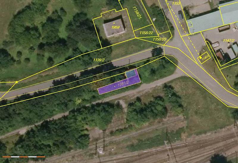 Pozemek se nachází v koridoru pro drážní dopravu, což velmi významně omezuje nakládání s prodávaným majetkem, na severním okraji města Ivanovice na Hané při ulici Nádražní a komunikaci na Pustiměř. Pozemek je částečně zastavěn stavbou bez čp/če a schody, z části je zpevněn betonovými plochami a z části je porostlý náletovými dřevinami. Stavba je nepodsklepená přízemní zděná z vápenopískových cihel se sedlovou střechou, která má krytinu z plechu a je bez podkroví. Její stáří je cca 40 let, je bez inženýrských sítí, neudržovaná, ve špatném technickém stavu, její zdivo je degradující a plechová střecha trpí korozí. V minulosti plnila funkci drážního domku. Přístup k pozemku je z veřejné komunikace, parkovací možnosti jsou omezené. Alternativní přístup je možný přes pozemek ve vlastnictví Českých drah, a.s. – bez zřízeného věcného břemene. Pozemek je v územně plánovací dokumentaci součástí plochy s označením DZ drážní doprava. Inženýrské sítě: Prodávaný majetek je možné napojit pouze na elektřinu. Úřadu jinak není známo, že by byl prodávaný majetek dotčen vedením nějakých inženýrských sítí. V případě pochybností ohledně uložení inženýrských sítí poskytnou kupujícímu bližší informace jednotliví (v úvahu přicházející) správci inženýrských sítí. Průkaz energetické náročnosti budovy bez čp/če dle zákona č. 406/2000 Sb. se nevyžaduje, protože budova splňuje podmínky pro výjimku dle ustanovení § 7a odst. 5 tohoto zákona.