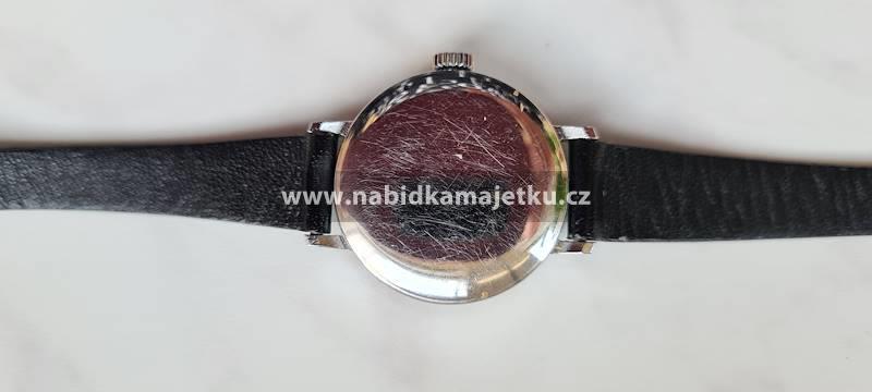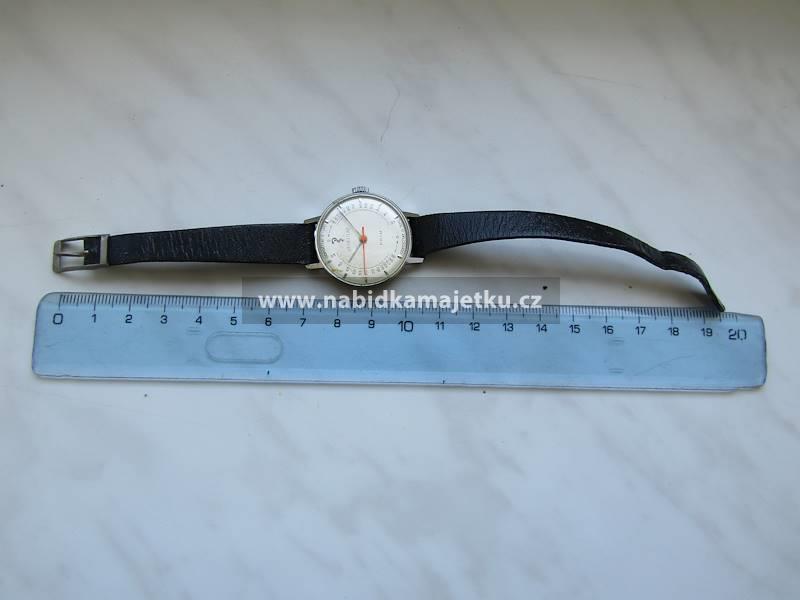 • Hodinky z bílého kovu zn. PRIM AESKULAP s koženkovým páskem černé barvy o délce 20 cm, 1 ks.