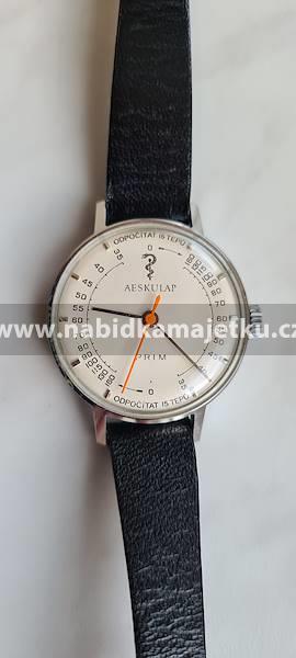 Jedná se o starší, použité, chromované, náramkové hodinky zn. PRIM AESKULAP, 28 mm, ve velmi zachovalém stavu, funkční.