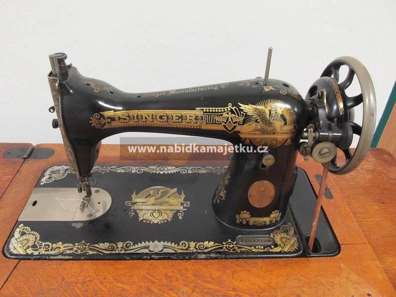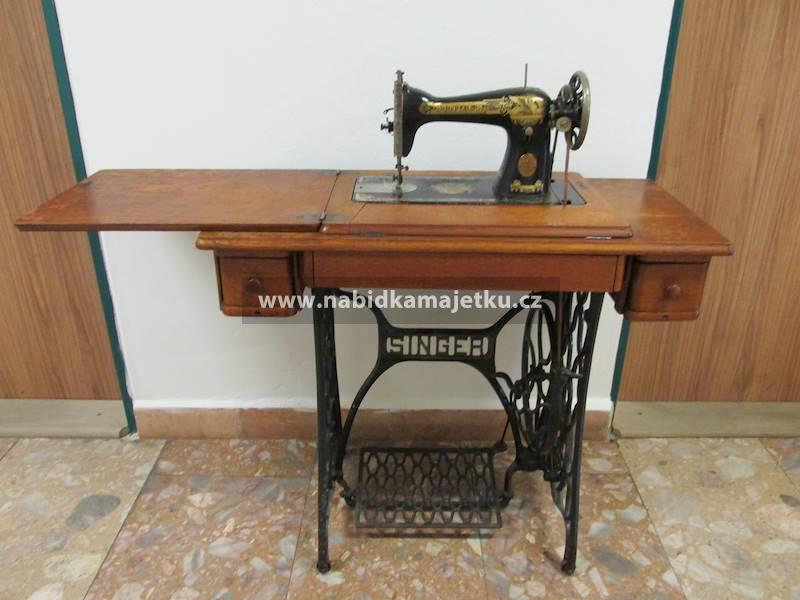 Skříňový šicí stroj SINGER, funkčnost nevyzkoušená, připadl státu jako součást pozůstalosti.