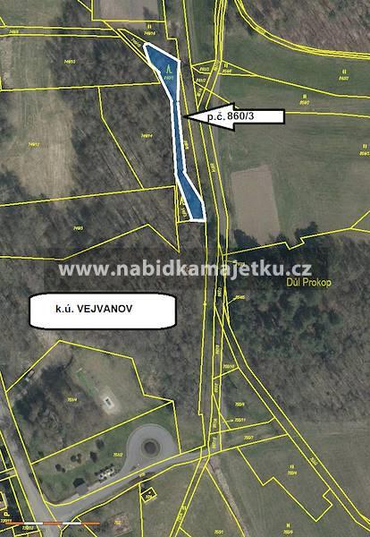 pozemek p. č. 860/3 o výměře 563 m2 lesní pozemek, způsob ochrany: pozemek určený k plnění funkcí lesa v k.ú. Vejvanov, obec Vejvanov zapsaný na LV 60000 vedeném Katastrálním úřadem pro Plzeňský kraj, Katastrálním pracovištěm Rokycany. Část pozemku tvoří koryto Vejvanovského potoka ve správě Povodí Vltavy s.p.