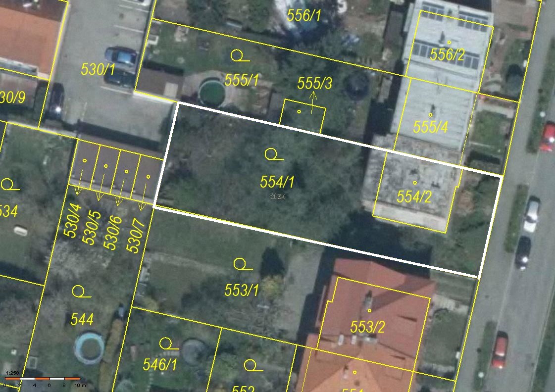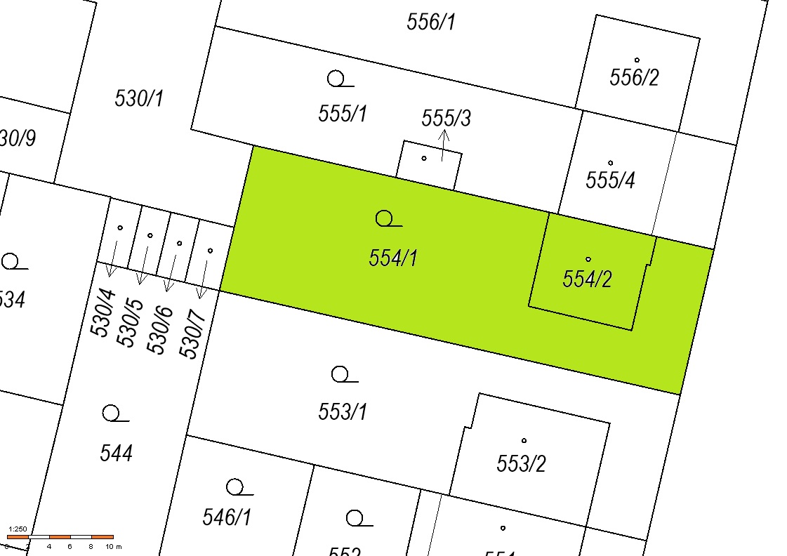 Pozemek parc.č. 554/2 je veden v katastru nemovitostí jako zastavěná plocha a nádvoří (jeho součástí je rodinný dům čp. 1070). Pozemek parc.č. 554/1 je veden v katastru nemovitostí jako zahrada a tvoří jednotný funkční celek s RD.