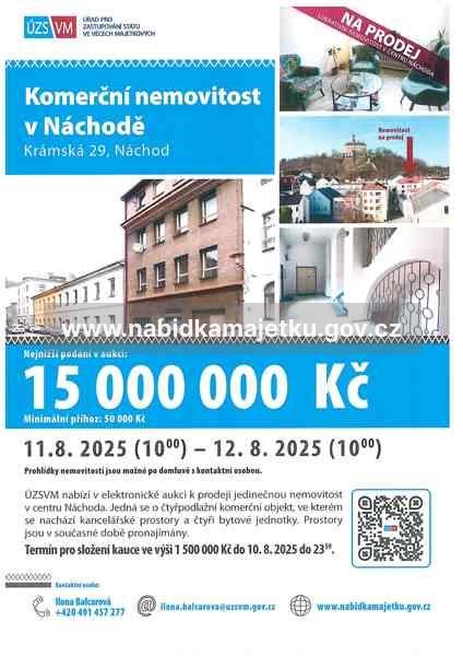 vše zapsané na listu vlastnictví č. 60000 pro katastrální území a obec Náchod, v katastru nemovitostí vedeném Katastrálním úřadem pro Královéhradecký kraj, Katastrálním pracovištěm Náchod, včetně všech součástí a příslušenství.