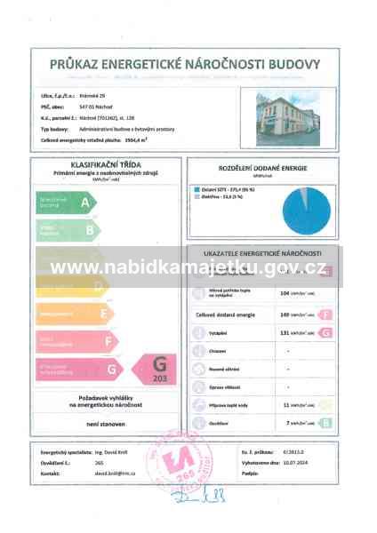Průkaz energetické náročnosti budovy Náchod č. p. 29, PSČ 547 01 dle zákona