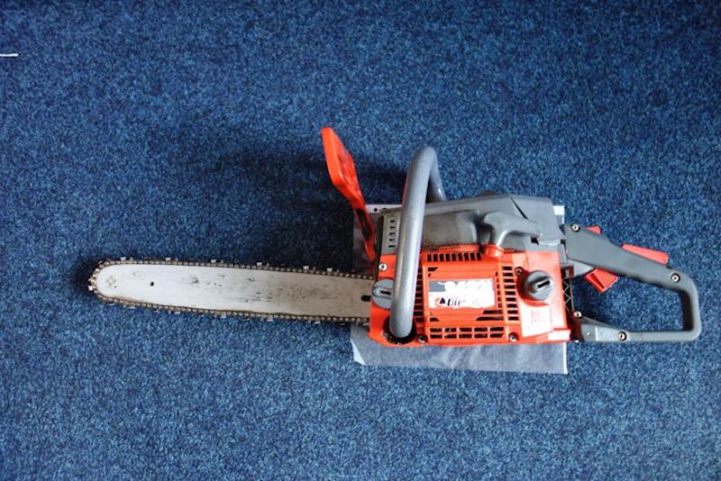 Řetězová, motorová pila zn. Oleo-Mac 942, oranžovo-šedé barvy s nápisem OREGON 38972 6W 325. Výrobní číslo nezjištěno, funkčnost nebylo možno prověřit.