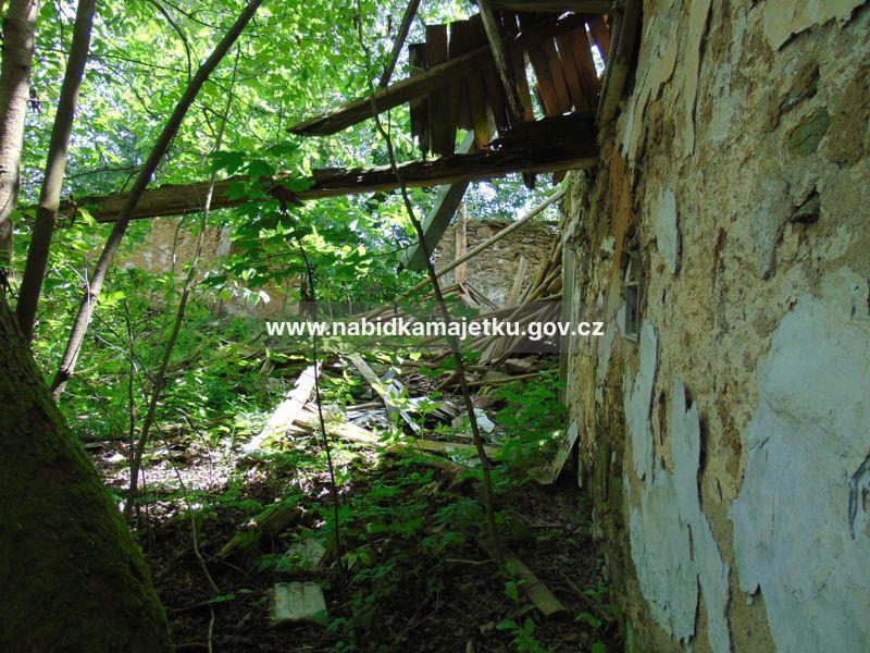 Jedná se o původní venkovské stavení. Sestává z obytné části na jihu pozemku parc. č. st. 12/1, k ní přilehlé hospodářské části (zřejmě chlévy, přístavba východním směrem k obytné části), což jsou stavby, jejichž pozůstatky jsou patrné, a dále se na pozemcích nalézají torza staveb, které byly zřejmě stodolou nebo obdobnou budovou. Aktuálně existuje prakticky jen stavba obytné části, u níž je patrná dispozice. I u této stavby jsou však značné statické poruchy, masivní praskliny v klenbách a zřícené povalové stropy, obdobně i konstrukce střechy. Technický stav neumožnuje užívání, dokonce ani bezpečnou prohlídku. Bylo zjištěno, že stavba je přízemní, zděná z kamene nebo smíšeného zdiva, stropy - klenby a povaly, krov dřevěný, krytina tašková, rozvody elektro z přípojky vzduchem. Dispozičně se nachází za vstupem úzká chodba, z níž je vstup do 3 místností. Na jižní straně obvodových stěn je zemina (okolní terén) prakticky až do výšky parapetu. Stáří staveb nedoloženo. Aktuální technický stav je havarijní, dům nelze opravit, je nutno jej odstranit.