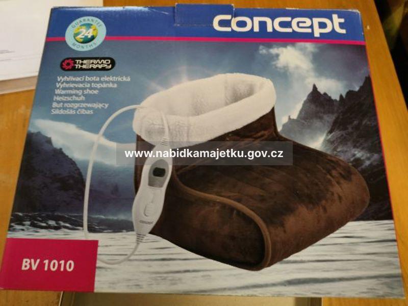 Jedná se o použitou vyhřívací elektrickou botu zn. Concept BV 1010. Bota připomíná „dvouponožku“ vnější část tvoří hnědá plyšová látka, vnitřní bota je ušitá z bílého „beránku“.