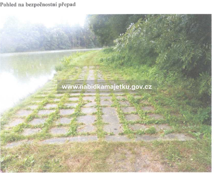 Bezpečnostní přeliv, který je součástí stavby rybníka, je opevněný betonovou dlažbou.