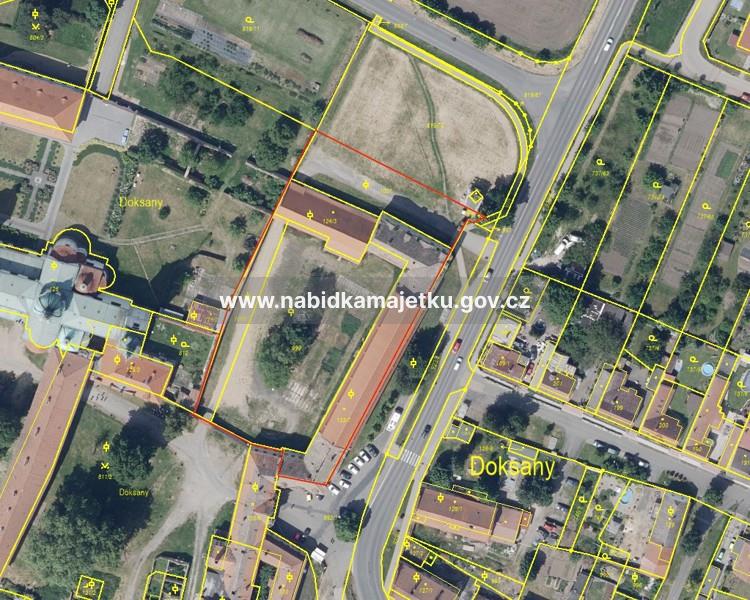 Předmětné pozemky a stavby jsou součástí areálu kláštera a zámku s kostelem v obci Doksany. Stavbu bez č.p./č.ev. na pozemku st.p.č. 123/7 tvoří sýpka a dva částečně podsklepené nárožní domy, které jsou ve špatném technickém stavu. V nárožních domech se nacházejí původní bytové jednotky v havarijním stavu. Sýpka má poměrně novou střešní krytinu a ze strany u silnice má opravenou fasádu. Stavba bez č.p./č.ev. na pozemku st.p.č. 124/3 je tvořena stodolou s průjezdem. Stodola je celkem v dobrém technickém stavu s novější střešní krytinou. Na pozemcích p.p.č. 999, 1000 a 1001 se nachází trvalý travní porost a několik vzrostlých stromů. Dále se na pozemcích p.p.č. 1000 a 1001 nachází účelová komunikace, která slouží k přístupu do zámku a pivovaru.