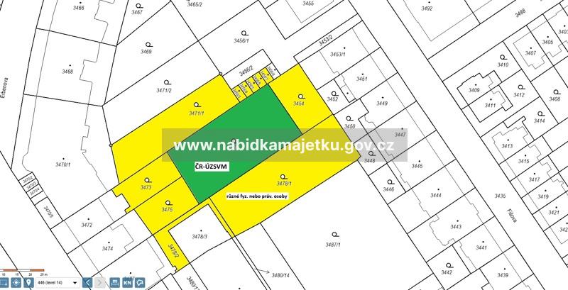 parcela číslo: 3476 o výměře 1060 m2, druh pozemku: zahrada, způsob ochrany: ochr. pásmo nem. kult. pam., pam. zóny, rezervace, nem. nár. kult. pam, zemědělský půdní fond,