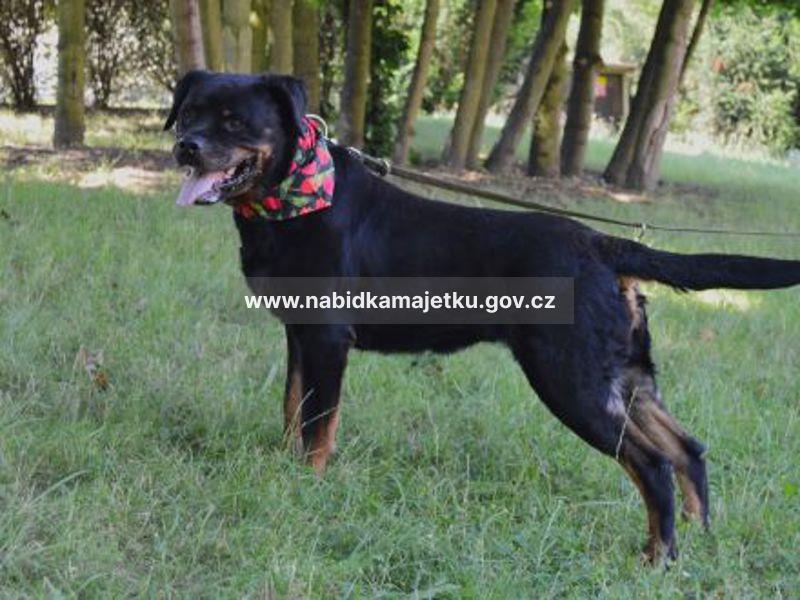 Bublina - fena - kříženec RTW. Po úmrtí majitele umístěna v útulku Jimlín .