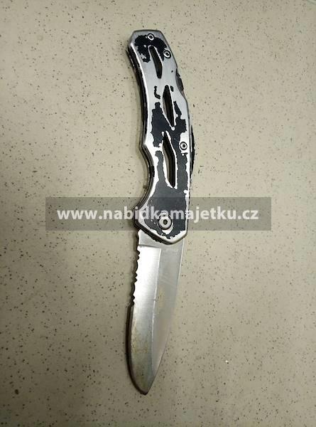 Již používaný, opotřebovaný otevírací nůž stříbrno-černé barvy s pojistkou, s nápisem Crivit na čepeli o délce 8 cm, celková délka 11 cm.