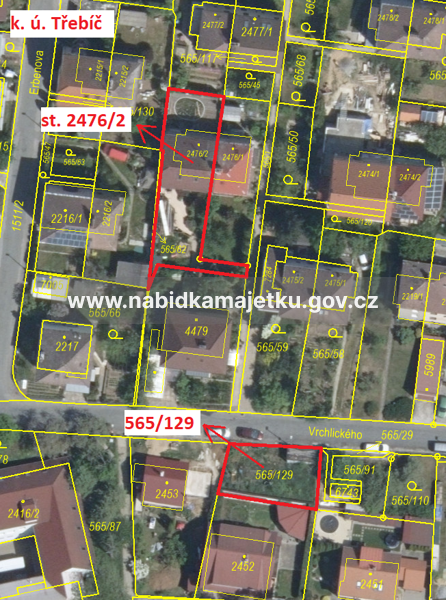 zapsaných v katastru nemovitostí vedeném Katastrálním úřadem pro Vysočinu, Katastrálním pracovištěm Třebíč na LV č. 18769 pro katastrální území Třebíč, obec Třebíč.
